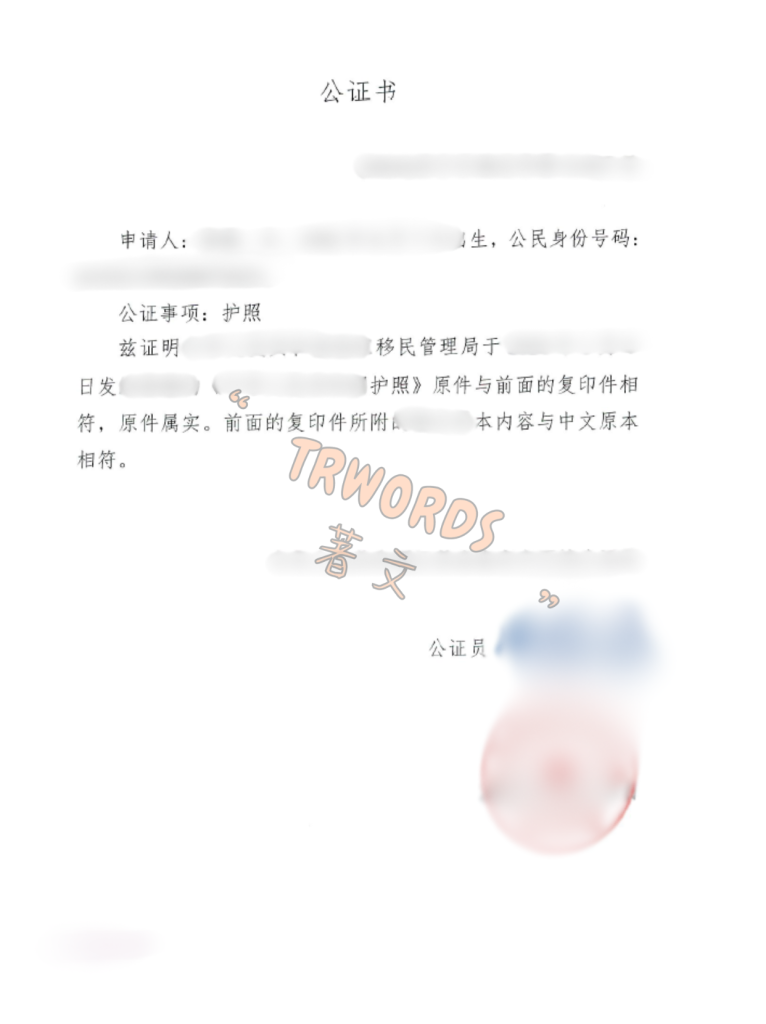 📌 注意:外国护照公证属于“翻译公证”,公证词中会注明“仅证明译文与原文相符,不对原文真实性负责”。这是标准表述,属正常情况。