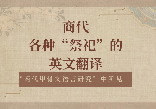 商代各种“祭祀”的英文翻译 ——“商代甲骨文语言研究”中所见 Post author:new_ecyti Post published:2023-08-07 Post category:著文之声 有幸翻译了司礼义神父(Paul Serruys)的长文“商代… 继续阅读商代各种“祭祀”的英文翻译 ——“商代甲骨文语言研究”中所见