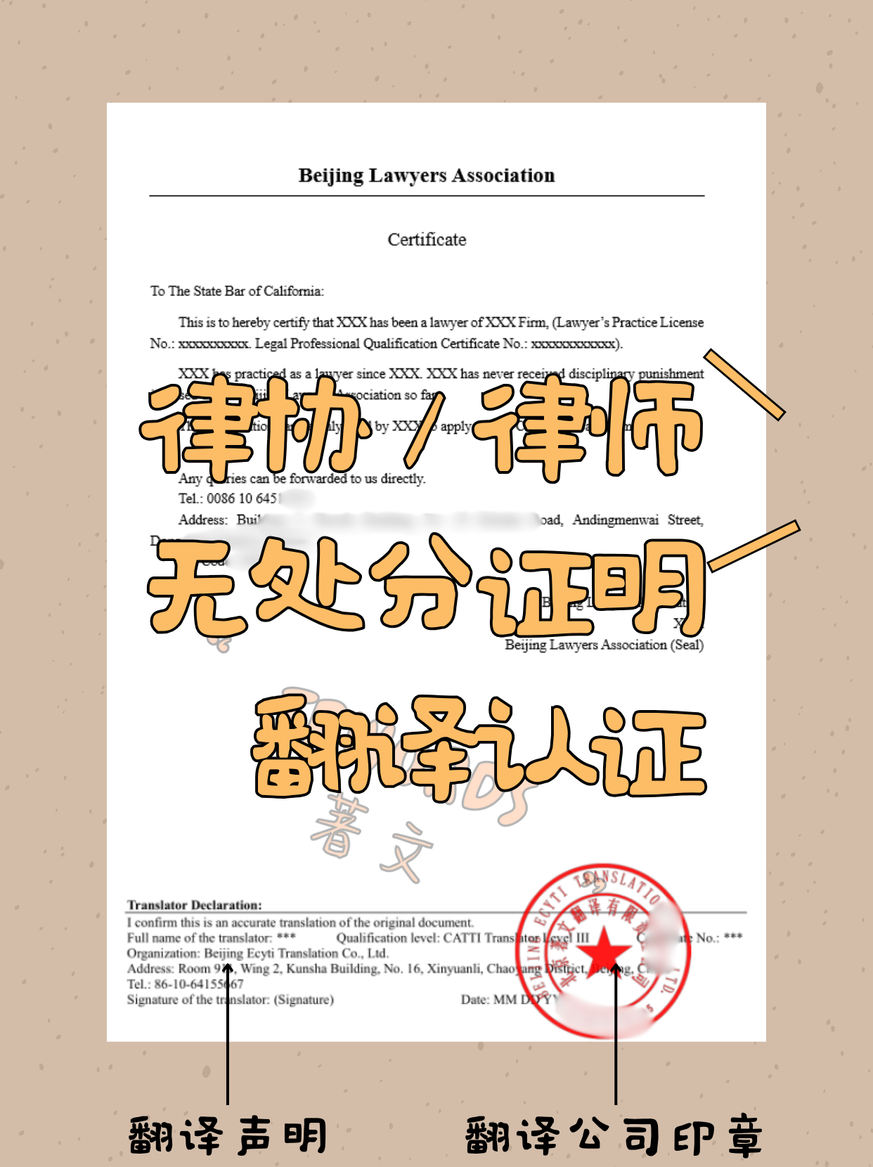 CA BAR 律师无违纪证明翻译认证|北京翻译公司 Post author:new_ecyti Post published:2024-04-28 Post category:著文之声 中国执业律师也可以申请加州执业律师考试,一般需要开具执业期间… 继续阅读CA BAR 律师无违纪证明翻译认证|北京翻译公司
