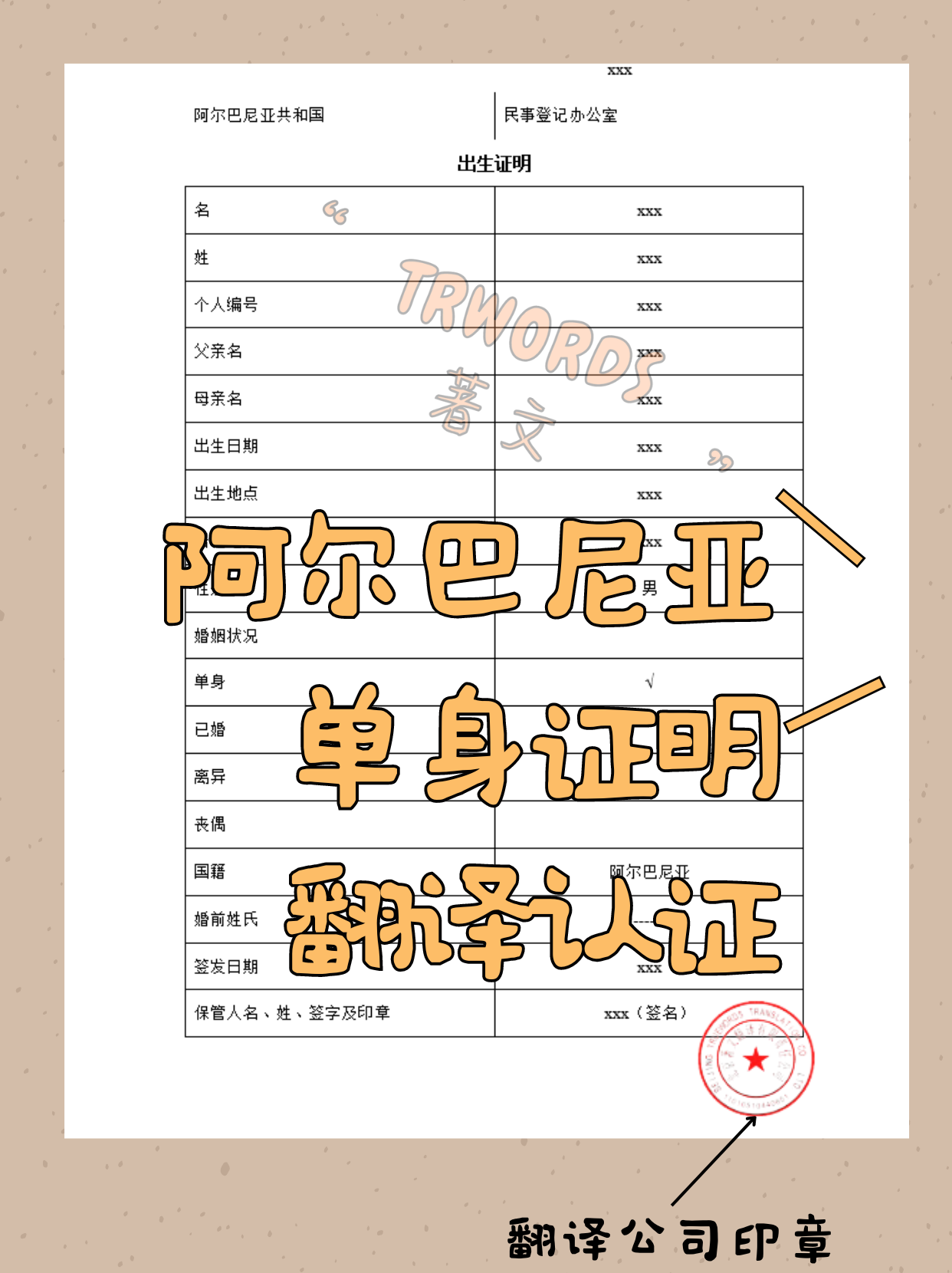 阿尔巴尼亚单身证明/出生证明翻译认证盖章 Post author:new_ecyti Post published:2024-04-28 Post category:著文之声 单身证明翻译(Certificate of Singleto… 继续阅读阿尔巴尼亚单身证明/出生证明翻译认证盖章