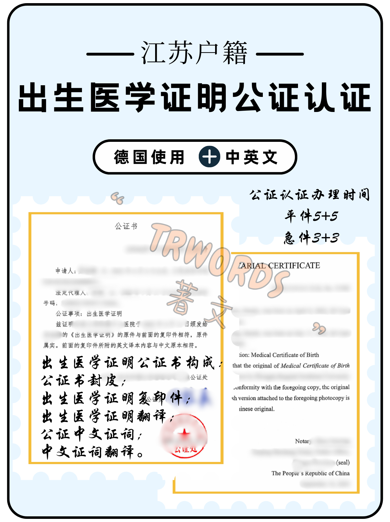 出生医学证明公证 | 江苏户籍 | 德国使用 Post author:new_ecyti Post published:2024-10-15 Post category:著文之声 在办理留学、移民、定居、探亲时,多数国家移民局或签证机构需要… 继续阅读出生医学证明公证 | 江苏户籍 | 德国使用