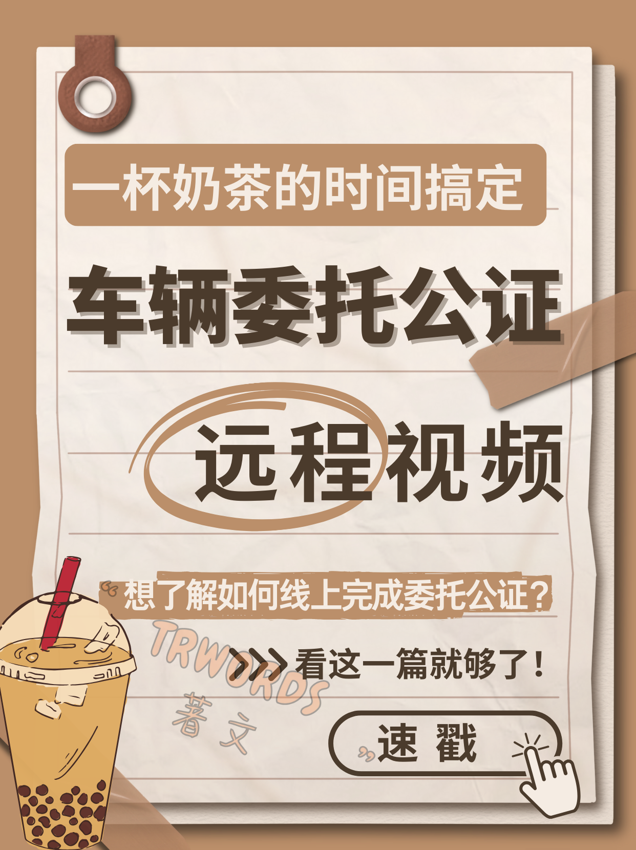 一杯奶茶的时间远程搞定车辆委托公证 Post author:new_ecyti Post published:2024-01-30 Post category:著文之声 远在国外也能线上视频搞定委托公证啦 一杯奶茶的时间就能完成视… 继续阅读一杯奶茶的时间远程搞定车辆委托公证