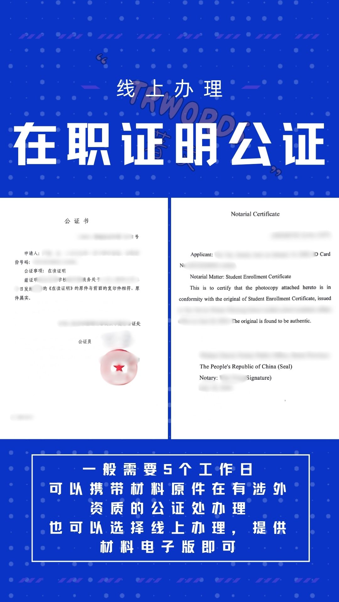 为了帮助申请人省时省力完成办理,著文翻译(Truewords)提供在职证明公证及后续认证的线上代办服务,无需本人亲自前往公证处,只需扫描件即可全程办理,快至5个工作日内出证!