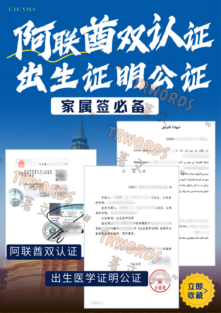 想把国内的孩子或配偶接到阿联酋一起生活?那你一定得了解清楚:出生医学证明公证+阿联酋双认证,是申请家属签证必须准备的材料之一!